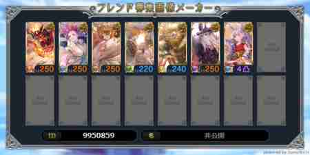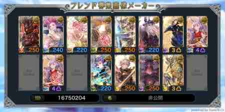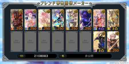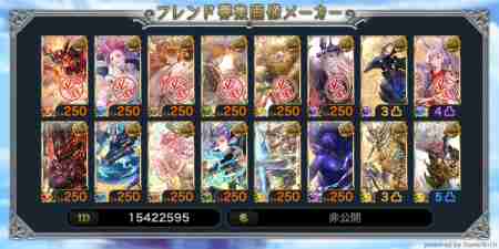 全属性神石250、カグヤありの人募集してます! その他枠は何でもOKです。 【ID】15422595 【Rank】424 【サポート召喚石】 画像の通り 各属性三枠目は属性石完凸が入ってます。